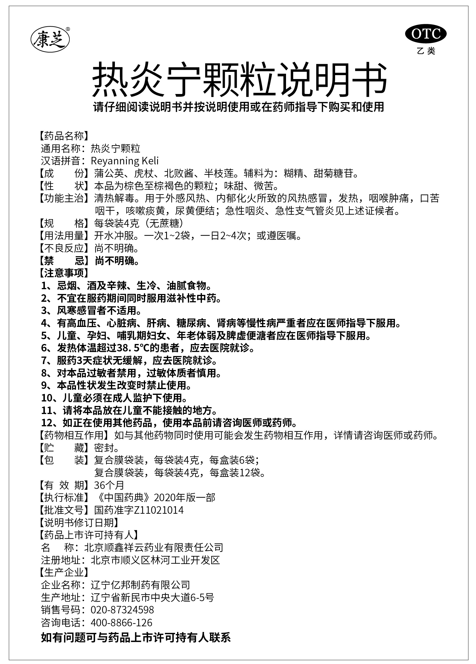 1.规格:4g*6袋/盒,4g*12袋/盒; 2.功能主治:清热解毒。用于外感风热、内郁化火所致的风热感冒,发热,咽喉肿痛,口苦咽干,咳嗽痰黄,尿黄便结;急性咽炎、急性支气管炎见上述证候者。